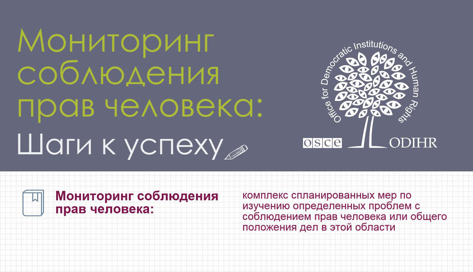 Данная инфографика основана на Учебной программе по мониторингу соблюдения прав человека – инструменте, созданном БДИПЧ для развития потенциала организаций гражданского общества в регионе ОБСЕ в проведении мониторинга соблюдения прав человека. Материал, составляющий основу Программы, неоднократно использовался для обучения представителей украинских общественных организаций в рамках проекта ОБСЕ «Укрепление диалога между гражданским обществом и ключевыми государственными органами и учреждениями в Украине».