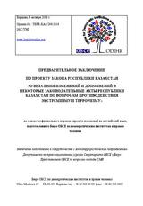 ПРЕДВАРИТЕЛЬНОЕ ЗАКЛЮЧЕНИЕ ПО ПРОЕКТУ ЗАКОНА РЕСПУБЛИКИ КАЗАХСТАН «О ВНЕСЕНИИ ИЗМЕНЕНИЙ И ДОПОЛНЕНИЙ В НЕКОТОРЫЕ ЗАКОНОДАТЕЛЬНЫЕ АКТЫ РЕСПУБЛИКИ КАЗАХСТАН ПО ВОПРОСАМ ПРОТИВОДЕЙСТВИЯ ЭКСТРЕМИЗМУ И ТЕРРОРИЗМУ»