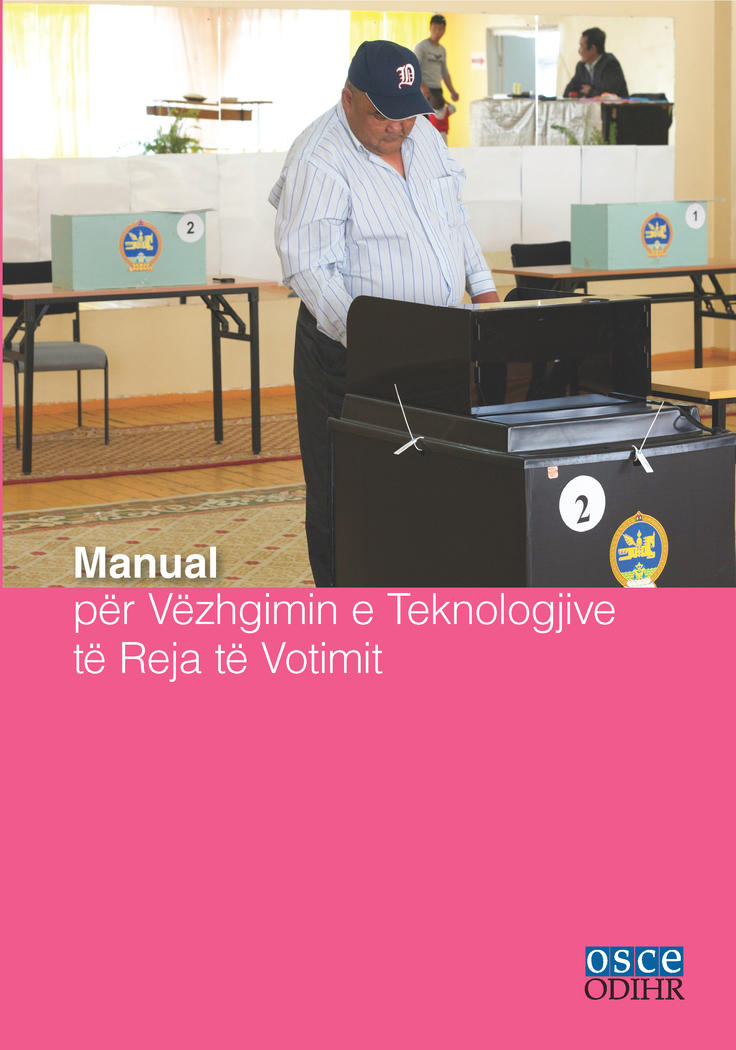 Front cover of the Handbook for the Observation of New Voting Technologies in Albanian