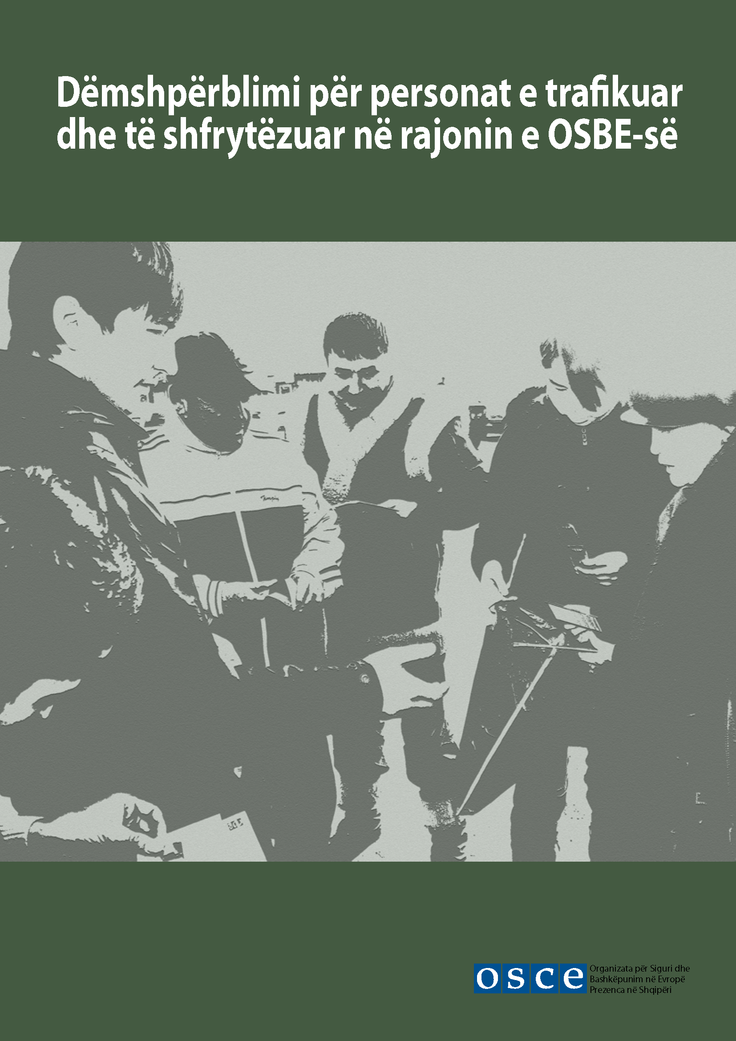 Front cover of the Albanian translation of the handbook "Compensation for Trafficked and Exploited Persons in the OSCE Region"