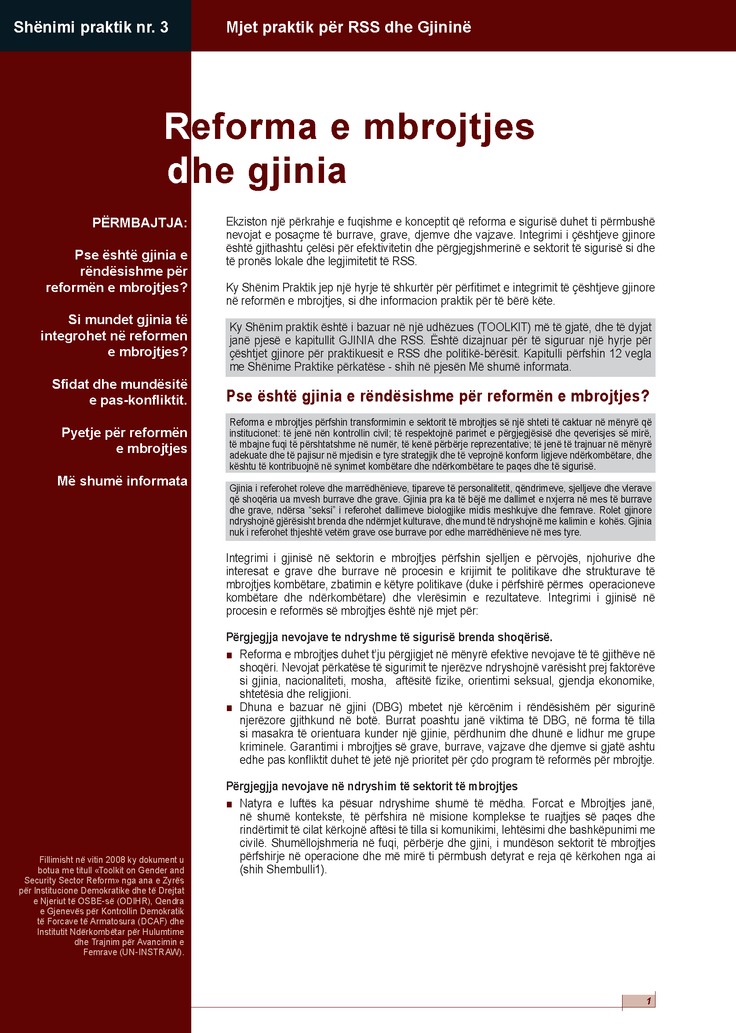 Albanian translation of the Gender and Security Sector Reform Toolkit - Practice Note 3