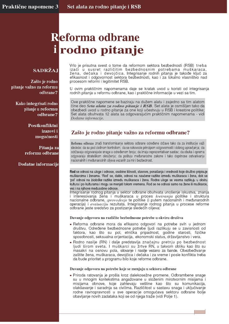 Serbian translation of the Gender and Security Sector Reform Toolkit - Practice Note 3
