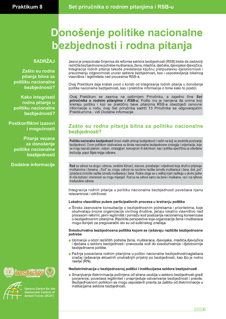 Serbian translation of the Gender and Security Sector Reform Toolkit - Practice Note 8