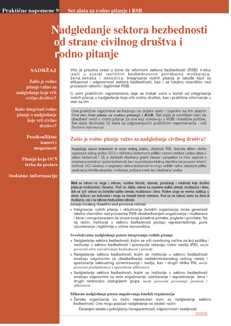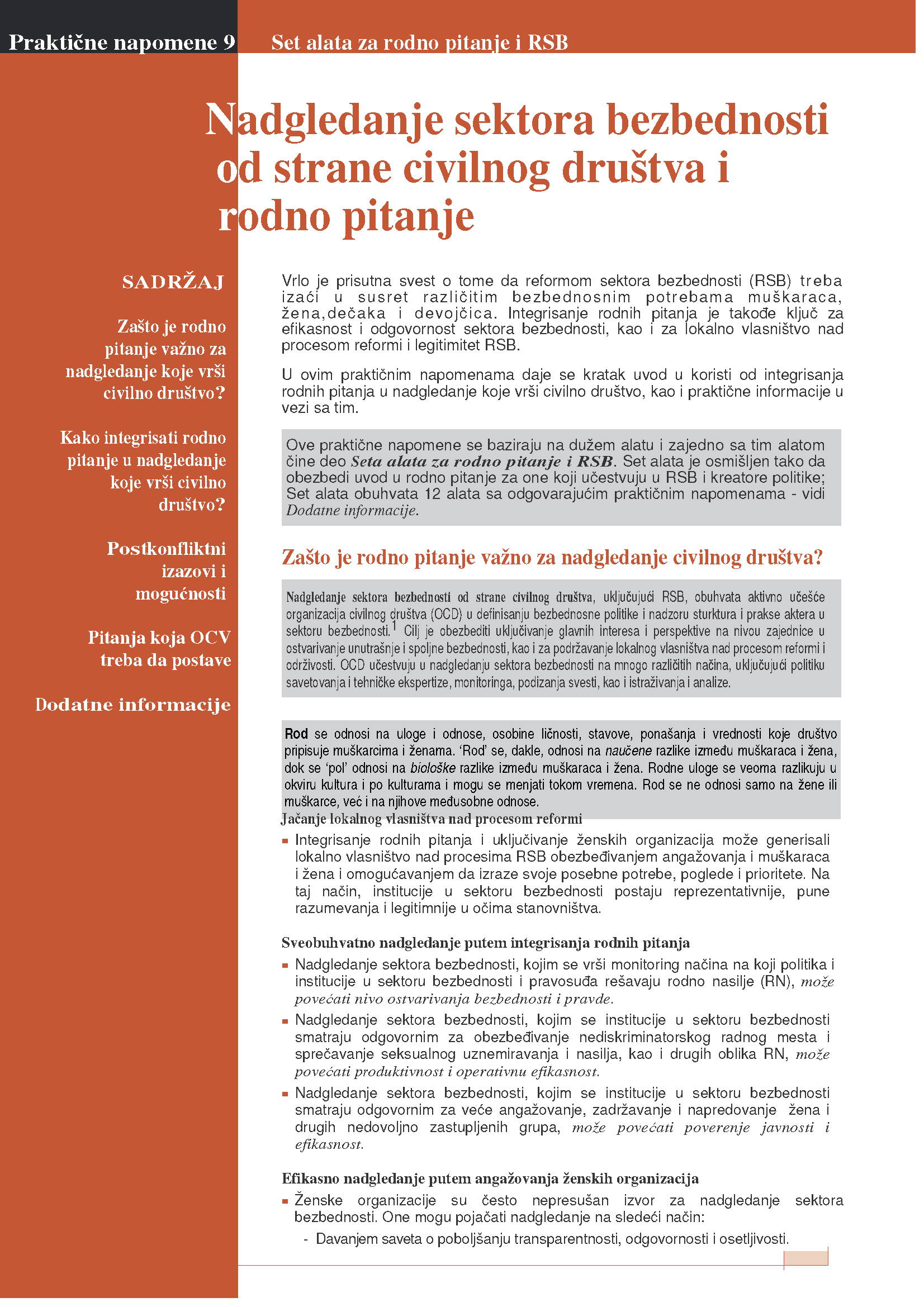 Serbian translation of the Gender and Security Sector Reform Toolkit - Practice Note 9